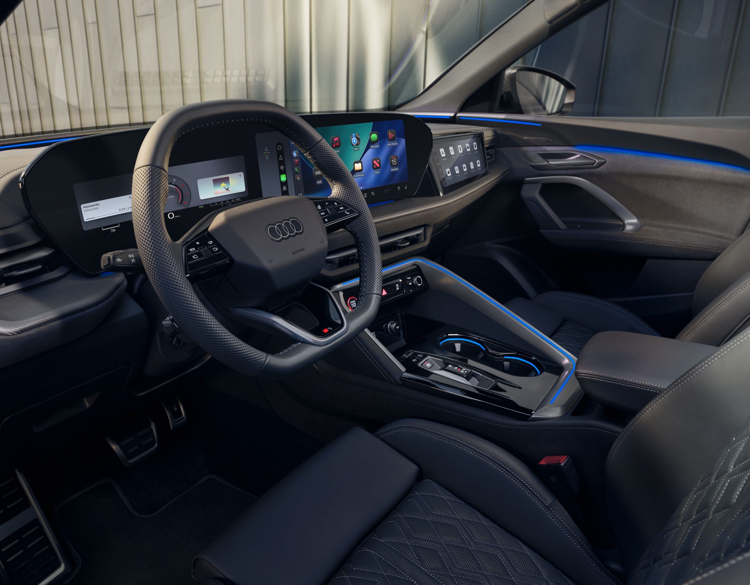 With the new “experience worlds,” Audi is introducing tailored mood scenarios that use interior lighting, sound, massage functions, and climate control settings to create an invigorating or relaxing atmosphere in the vehicle. Activating, Relaxing, and Harmonizing scenarios will be available with the launch of 2026 A5 and Q5 models, with additional scenarios possible in the future. Once activated, each scenario lasts between 10 and 20 minutes, and it can dynamically adapt to the vehicle’s movements while driving.