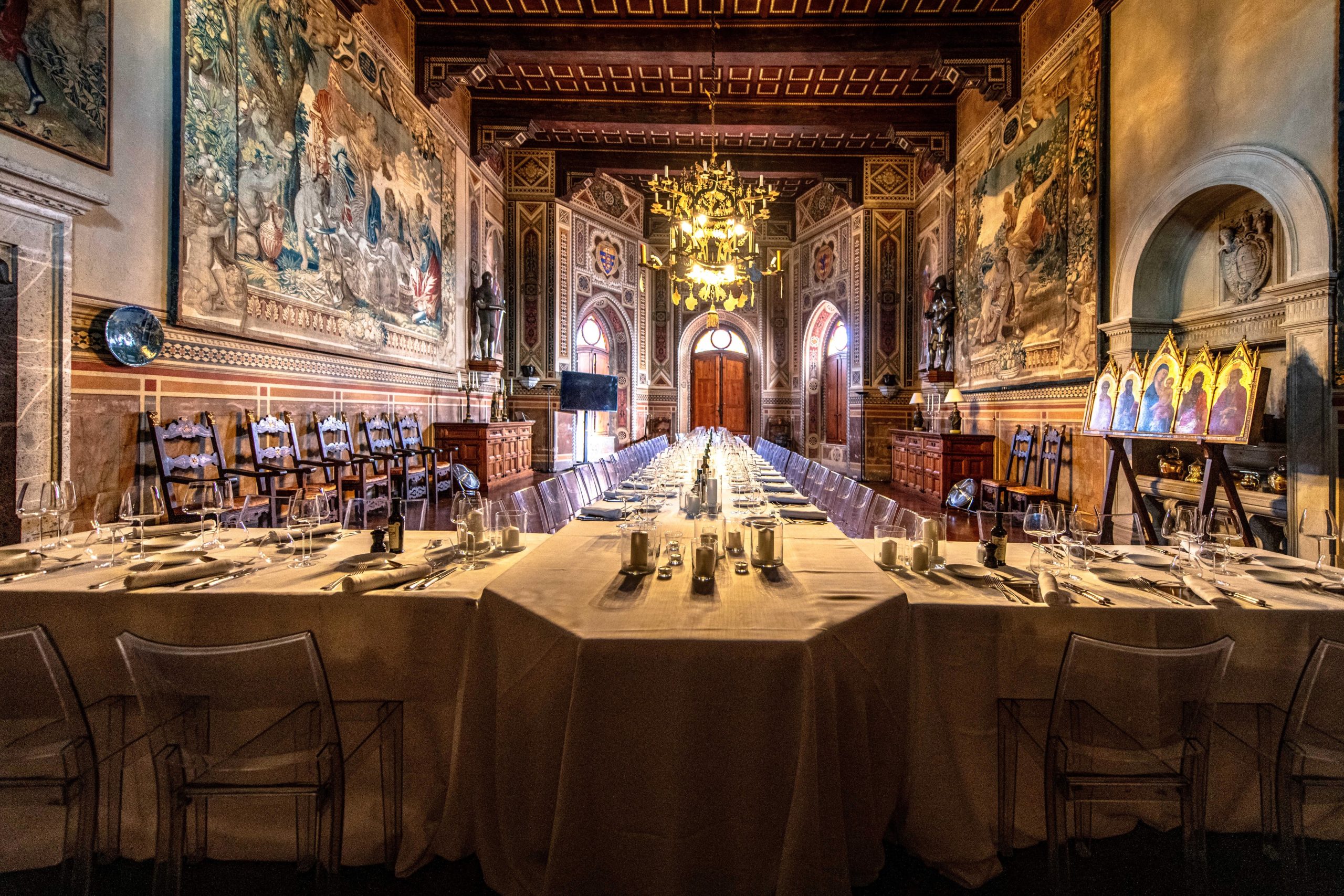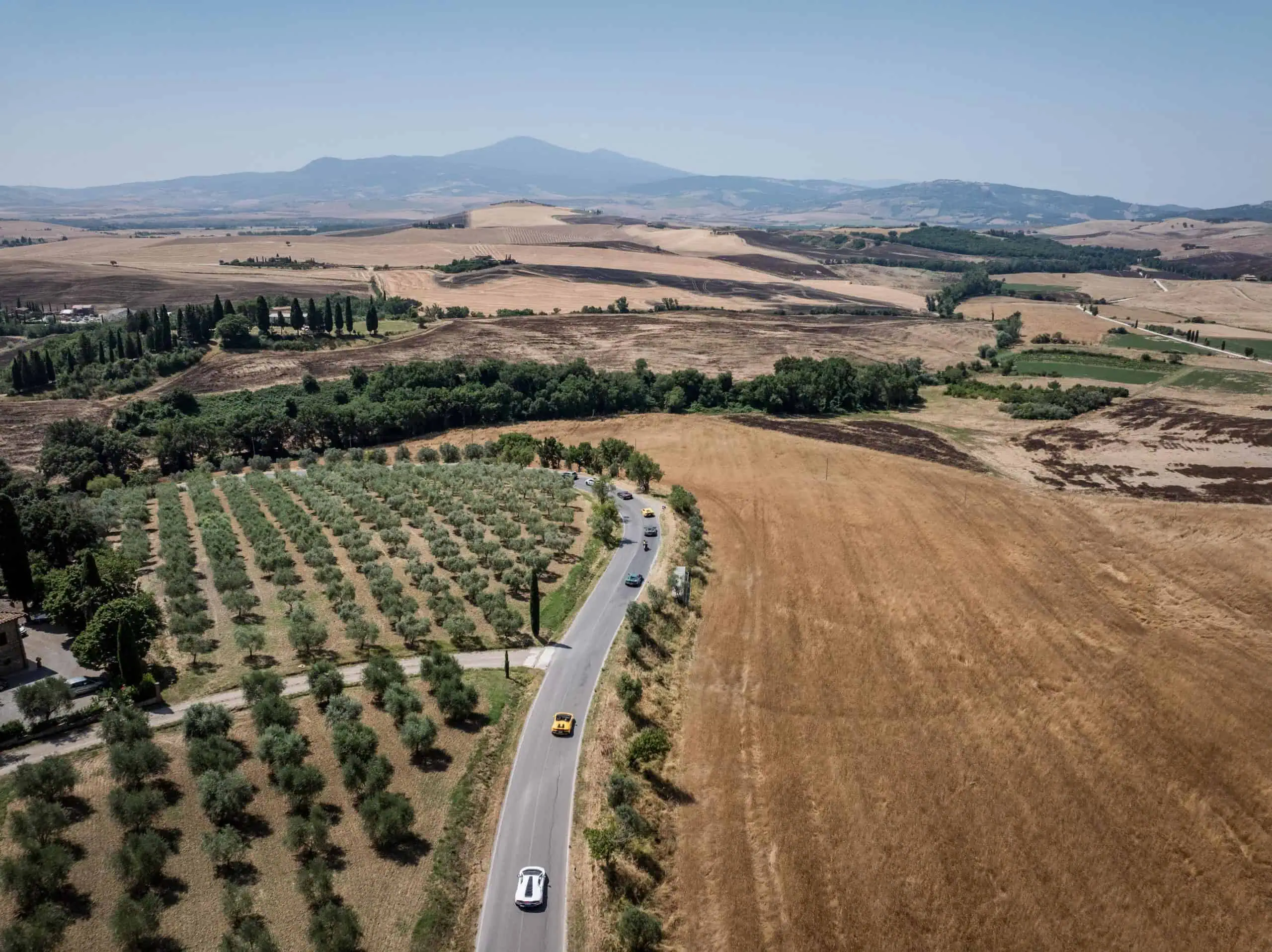 Departing the hotel on day three, the Giro headed to the medieval hill town of the famed Montepulciano wines in the south of the Siena province, for an espresso break and to admire the iconic Italian views. The party eagerly restarted their engines to explore the specially-curated route through hills and valleys to arrive at a Tuscan barbecue lunch at the wine-producing Tenuta Col d’Orcia. The convoy returned to the evening’s dinner at Castello di Brolio, the ‘home’ of Chianti and in the same family for nearly 800 years, where dining in the private hall recalled the historic elegance of the twelfth century estate, accompanied by a medieval-style entertainment.
