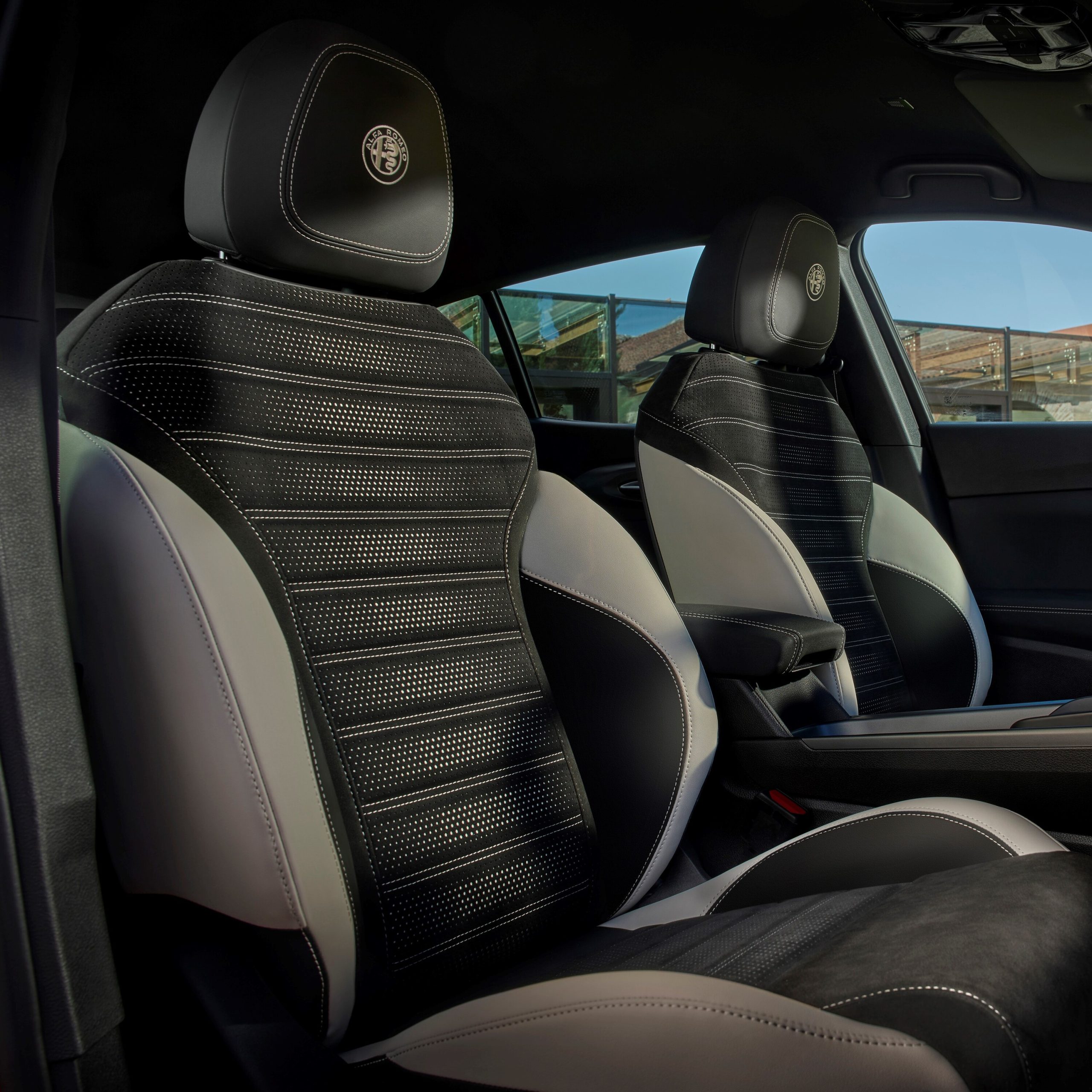 Across all trims, the new Tonale interior contrasting stitching on the dashboard, door panels and armrest adds refinement, while premium leather and Alcantara-trimmed seating surfaces feature eight-way power seats in the front, along with four-way power lumbar support, heating and ventilation.