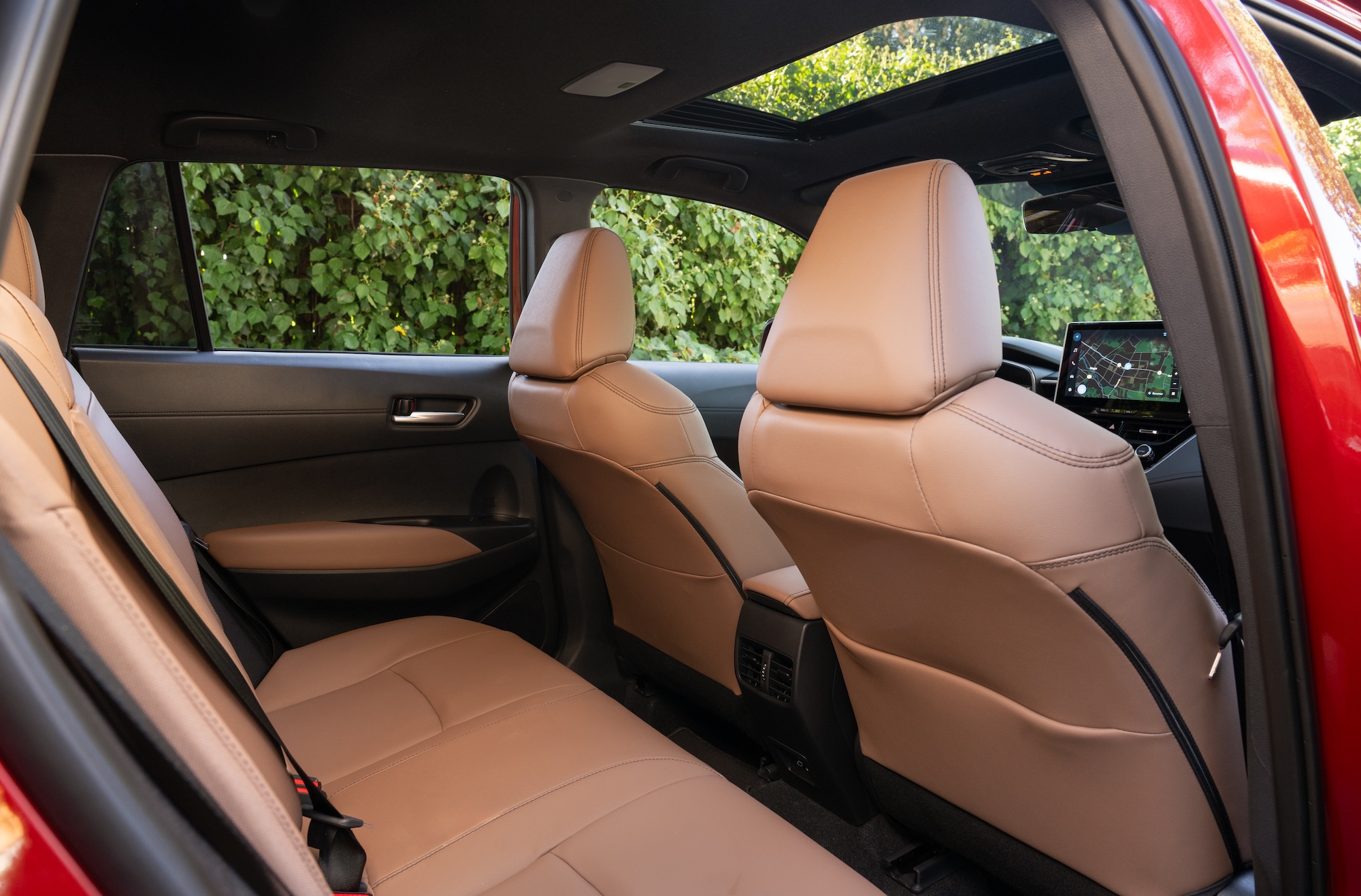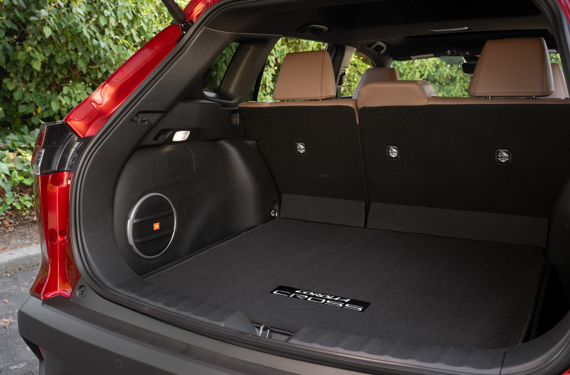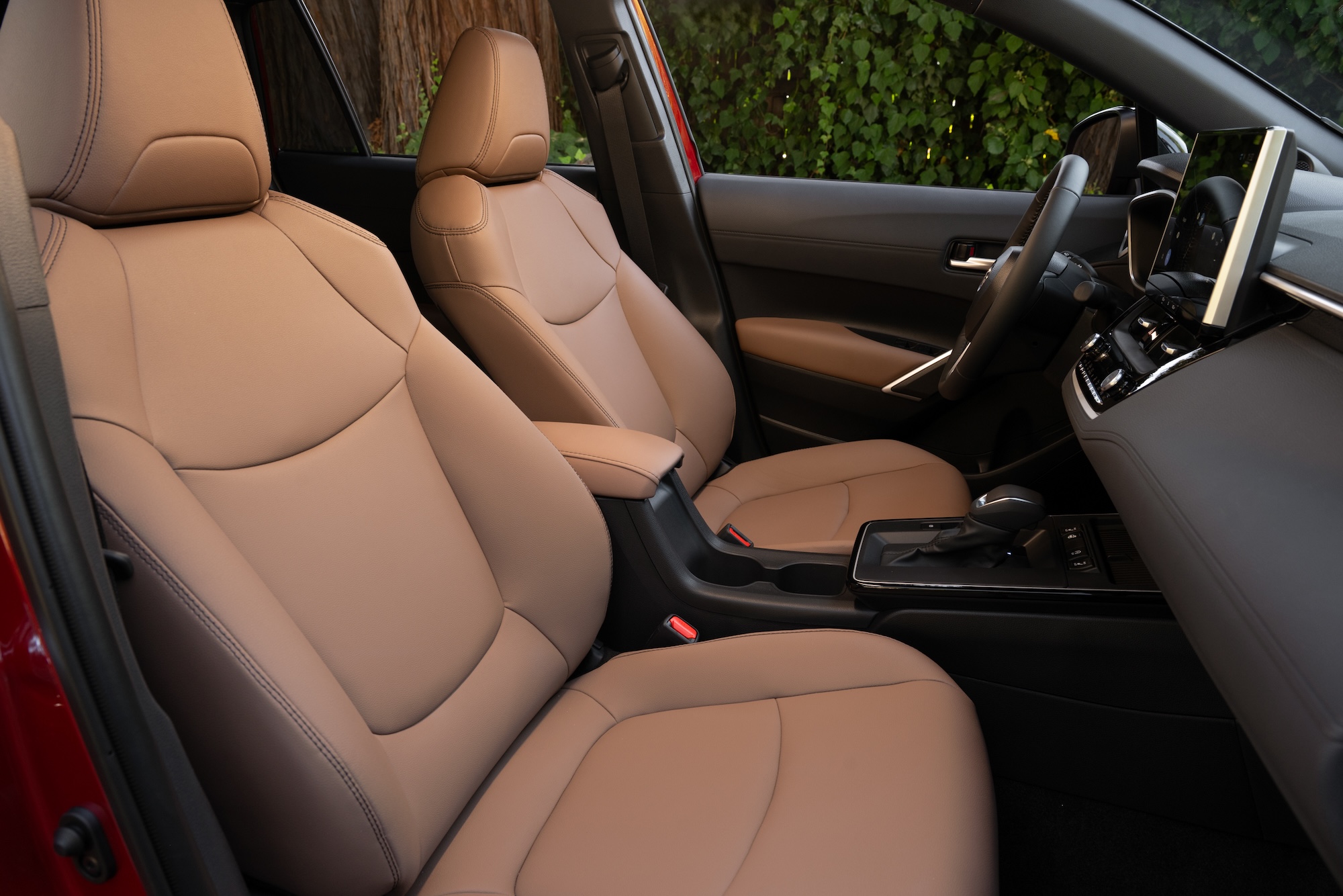 The interior also receives changes that enhance Corolla Cross’ usability. The front console is reworked on all grades to maximize its usable storage space while also providing driver-friendly access to the gear shifter and other controls. For models equipped with a wireless Qi charger, a divider helps keep phones in place. The XLE grade also adds the fashionable Portobello interior color to its options.
