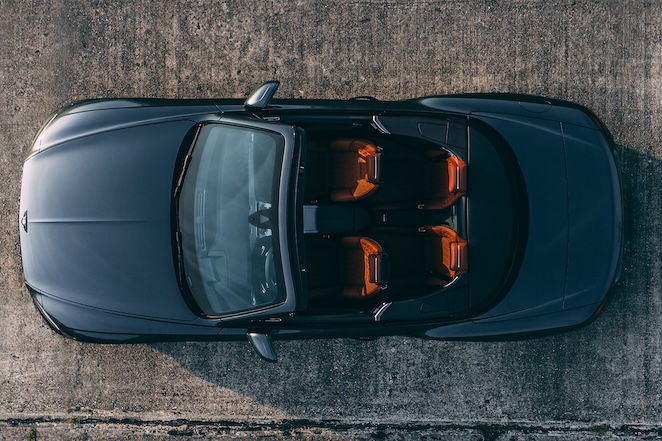 The Czech Collection Continental GT Convertible is finished in Thunder, a steely blue shade, recalling the Spitfire’s sky camouflage paint. Blackline specification, 22” wheels in Thunder and Grey and a Czech Squadron Collection fender badge complete the exterior. Inside, a bespoke colour split features Imperial Blue secondary hide, Cognac main hide and Brunel accent hide. The door armrest lower panels and seatbacks are trimmed in herringbone charcoal tweed, while the bright tint engine spin fascia and console continue the ‘technical’ design ambience as a stunning showcase for Mulliner’s craft skills. The bespoke treadplates feature a profile of the RAF’s Merlin-powered Spitfire with the 310 Squadron motto ‘We fight to rebuild’ while the laser-etched headrests reproduce the 310 Squadron insignia in minute detail.