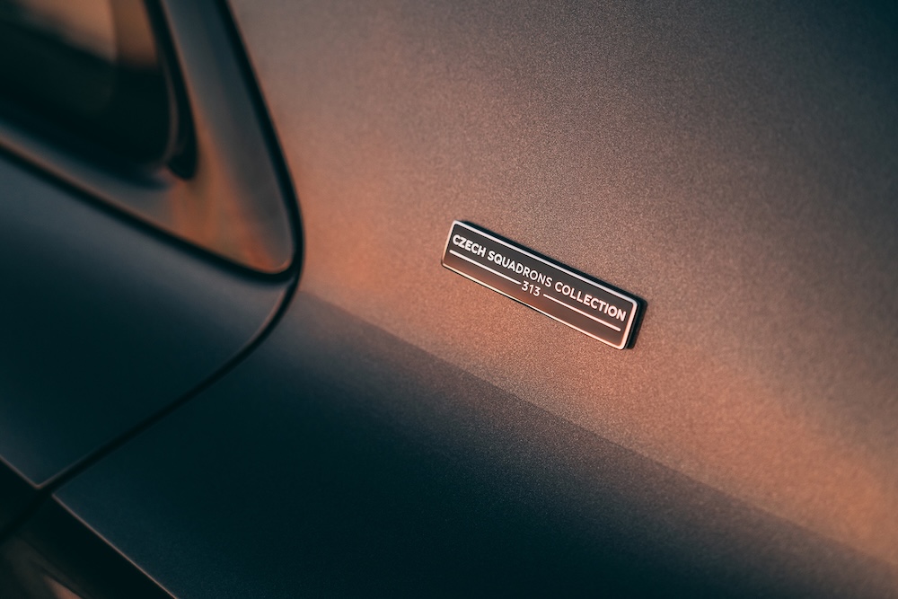 Another Czech fighter squadron, No. 312 flew both Hurricanes and Spitfires, and it is the latter which features on the Continental GT’s bespoke treadplates, together with the squadron motto ‘Not many, but much’. Again, the laser etched headrests feature the intricate detail of the 312 Squadron insignia. The Continental GT’s sleek, low lines are accentuated by the stealth-fighter colour palette of Barnato solid green, Blackline specification and 22” ten-spoke wheels in Barnato and grey. The visual impact is of a powerful, functional machine – with clear echoes of the original RAF livery. A Czech Squadron Collection badge can be found on both front fenders.
