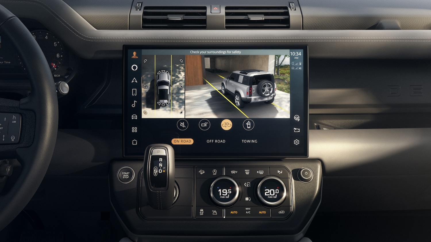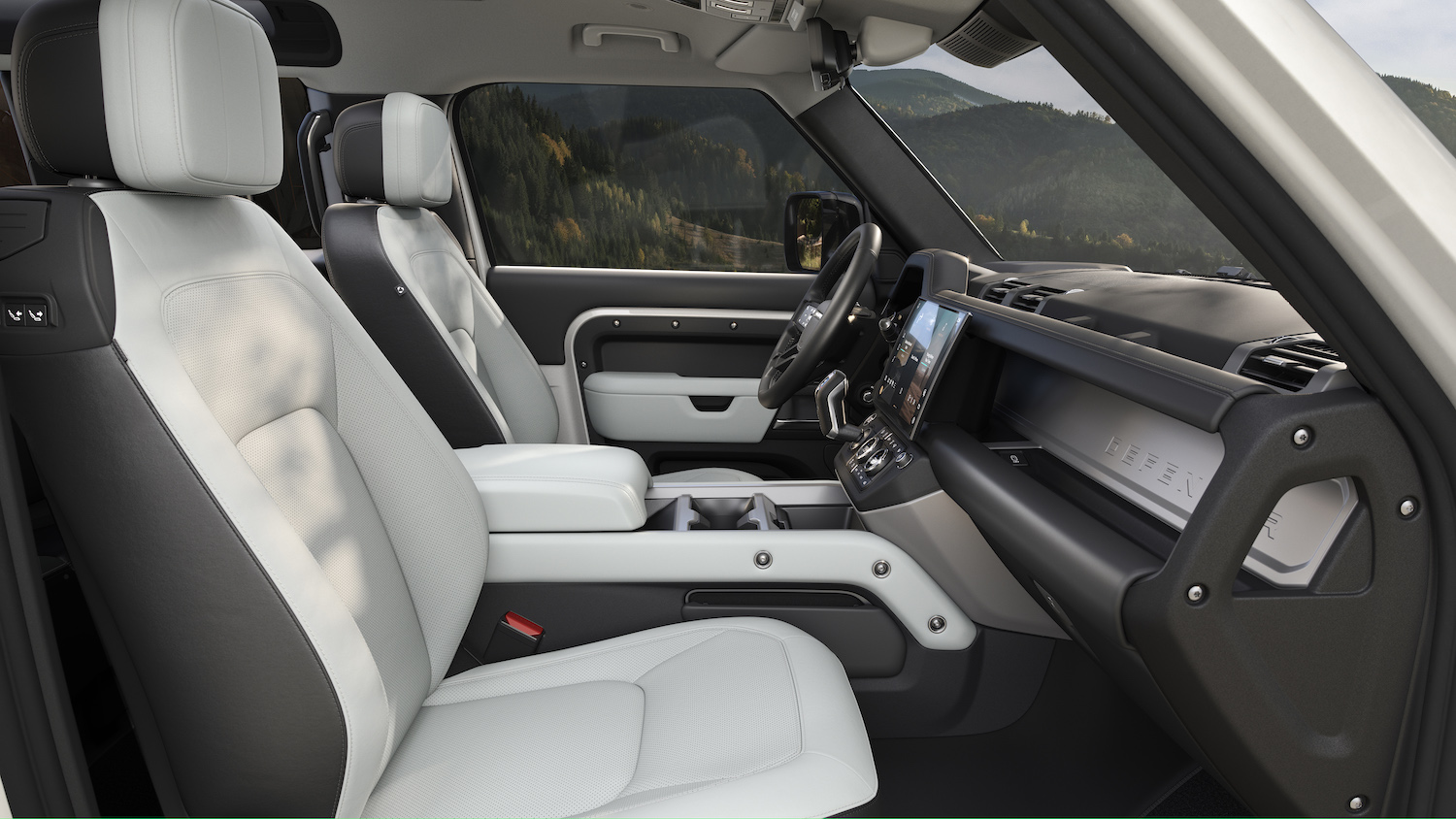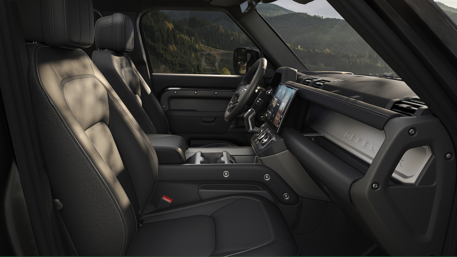 Inside, a new 13.1-inch touchscreen for the infotainment system brings all of Defender’s technology highlights to the front-row occupants via a larger display, above the ergonomically repositioned dash-mounted gear shifter.