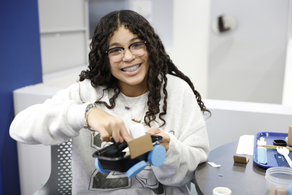 A student presents her future mobility vehicle during the Child Creativity Lab STEAM workshop at Donald W. Reynolds Boys & Girls Club of Southern Nevada in Henderson, Nev., on Feb. 6, 2026. (Photo/Genesis)