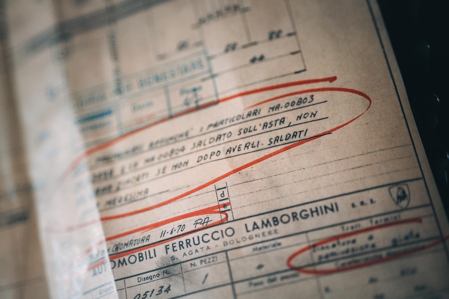 At the Sant’Agata Bolognese facility, Polo Storico holds technical drawings, original sketches, production sheets, photographs, commercial correspondence, and other materials collected since the company’s founding in 1963. The historical Archive is a vital resource for documenting the brand’s evolution and supporting the restoration, certification and research activities of Polo Storico. This wealth of documentation has often been essential in reconstructing the history and identity of Lamborghini vehicles under restoration or certification. Notable examples include the reconstruction of the Countach LP 500, the first prototype, fully recreated in 2021 using original documents, and the identification of the Miura P400 featured in the film The Italian Job, authenticated thanks to an in-depth analysis by Polo Storico experts.