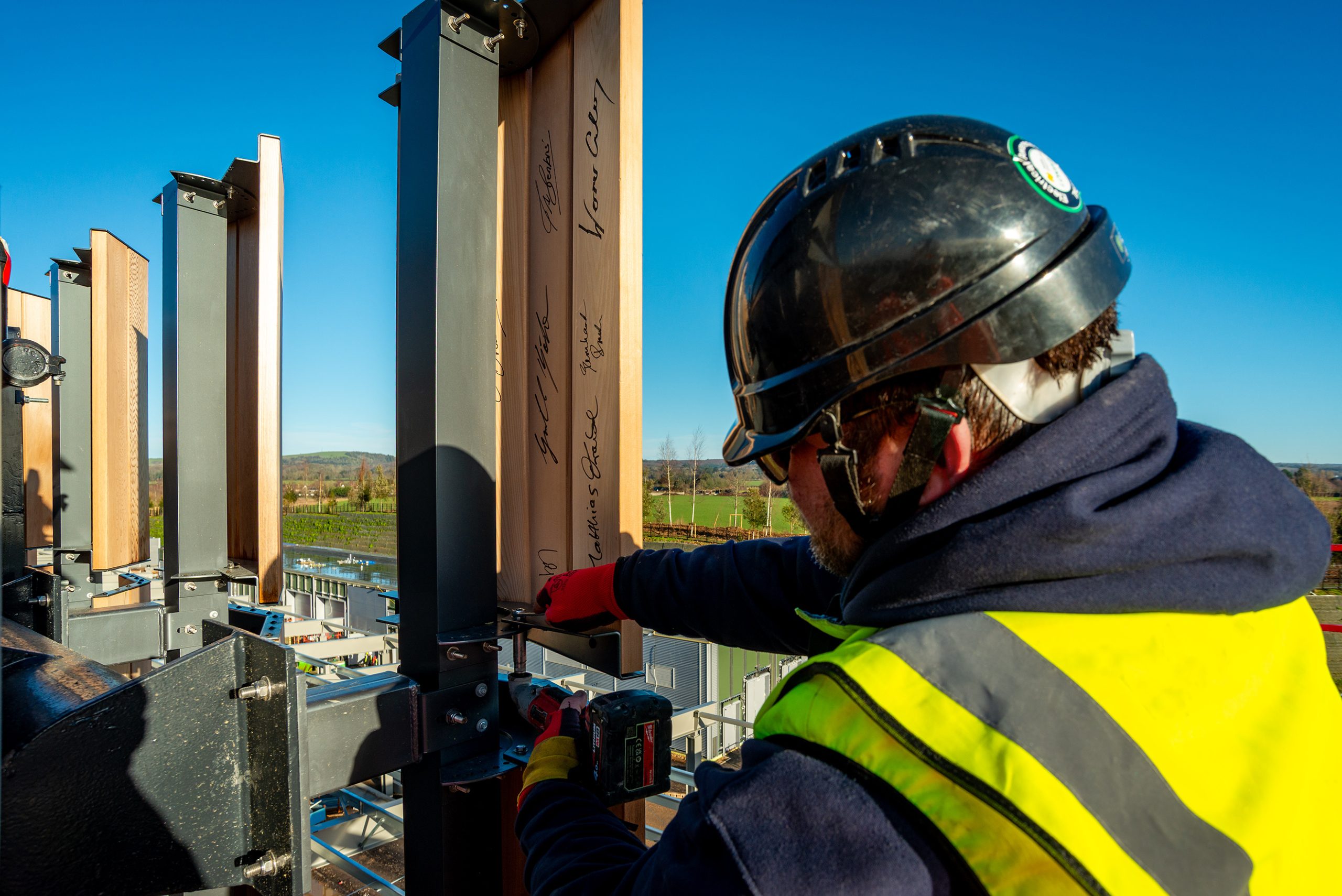 “This moment marks the point at which our new extension building becomes fully weathertight, meaning our specialist Technologies can begin the complex, exacting process of fitting-out, in readiness for full operation in 2029. It’s a really pivotal point in the project – a project that upholds the standards and vision of our founder, Sir Henry Royce, and his famous injunction to strive for perfection in everything we do. The Directors and I have also been inspired by his practice of personally inspecting and signing off each new component, giving them his own ‘seal of approval’. Having previously signed off the final element of the structural steelwork, we wanted to do the same for the last of the wooden louvres that now clad its exterior. It’s enormously exciting to see the work progressing with such pace and precision. To have that sense of personal connection with such a significant project through these signing ceremonies is very special for all of us.” – Chris Brownridge, Chief Executive, Rolls-Royce Motor Cars.