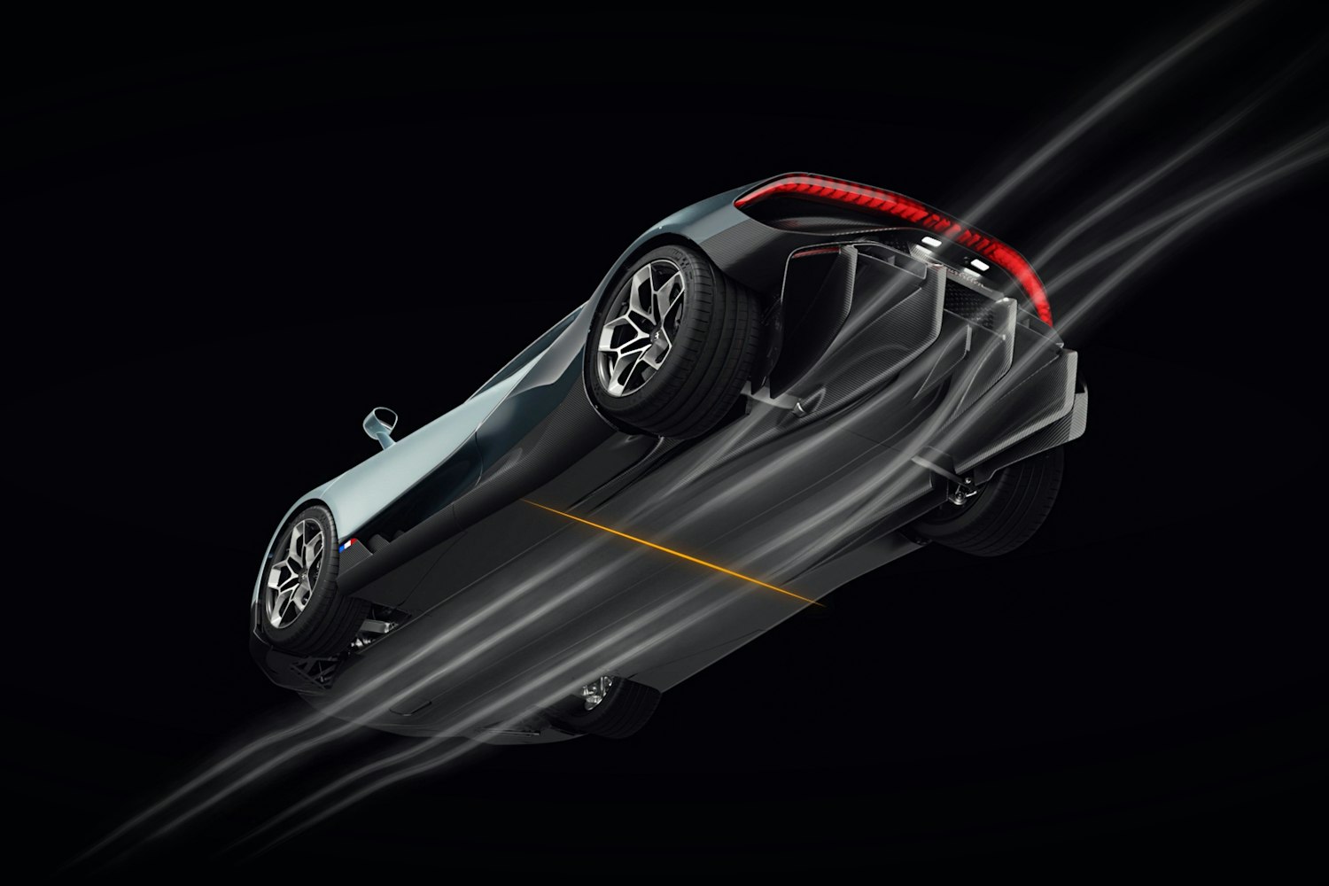 The Tourbillon’s design team have taken exceptional pride in the vehicle’s ability to travel at very high speed, without the need to deploy the rear wing; sitting entirely flush against the bodywork, in a marvel of sleek design and evading the disadvantages of drag. Its striking diffuser represents the sole means of achieving that feat, making the concept of aerodynamic balance – tempering lift with wing-less downforce – a reality.