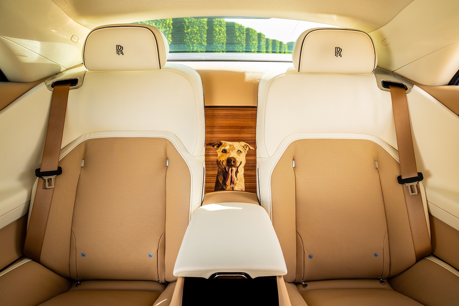 The centrepiece of the interior is a lifelike marquetry portrait of Bailey, positioned on the waterfall between the rear seats. The intricate composition took more than four months to complete and comprises more than 180 pieces of veneer. To capture the warmth and texture of Bailey’s coat, the artisan explored a rich spectrum of natural veneers, experimenting with grain direction, tone, and texture. Each sheet was chosen for its natural hue and pattern, with no staining or artificial treatment. Bailey’s tongue alone was crafted using four veneers never previously employed by Rolls-Royce – Purple Heart, Tulipwood, Louro Faia, and Pear – selected for their subtle colour variations. In total, nine veneers were used, representing 22 natural shades, to create a portrait of remarkable warmth and realism.