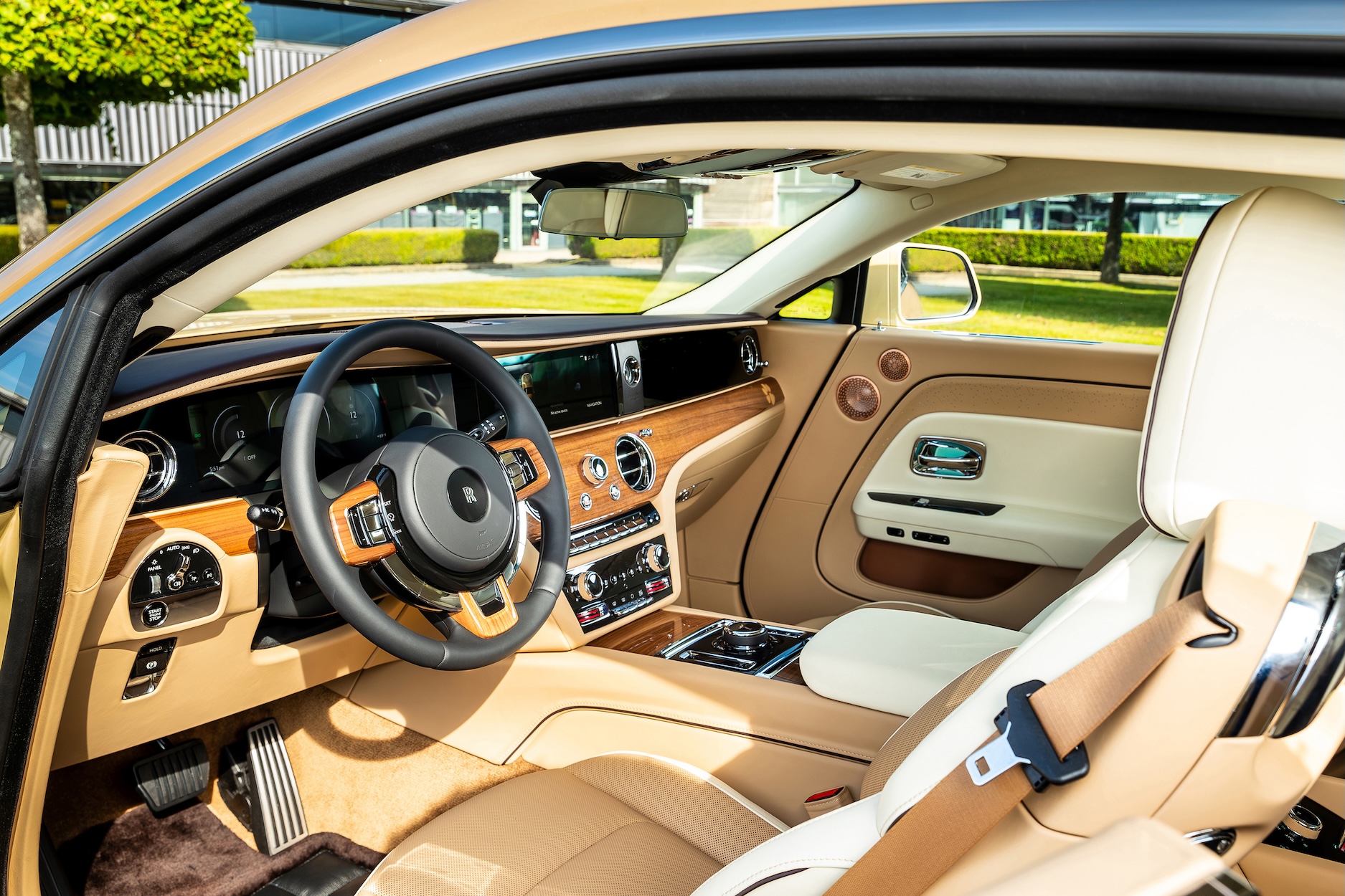 The interior of Spectre Bailey is presented in Moccasin and Crème Light leather, beautifully complemented by Dark Spice and Casden Tan accents, reminiscent of Bailey’s fur colour. The wood surfaces are finished in High Gloss Royal Walnut veneer.