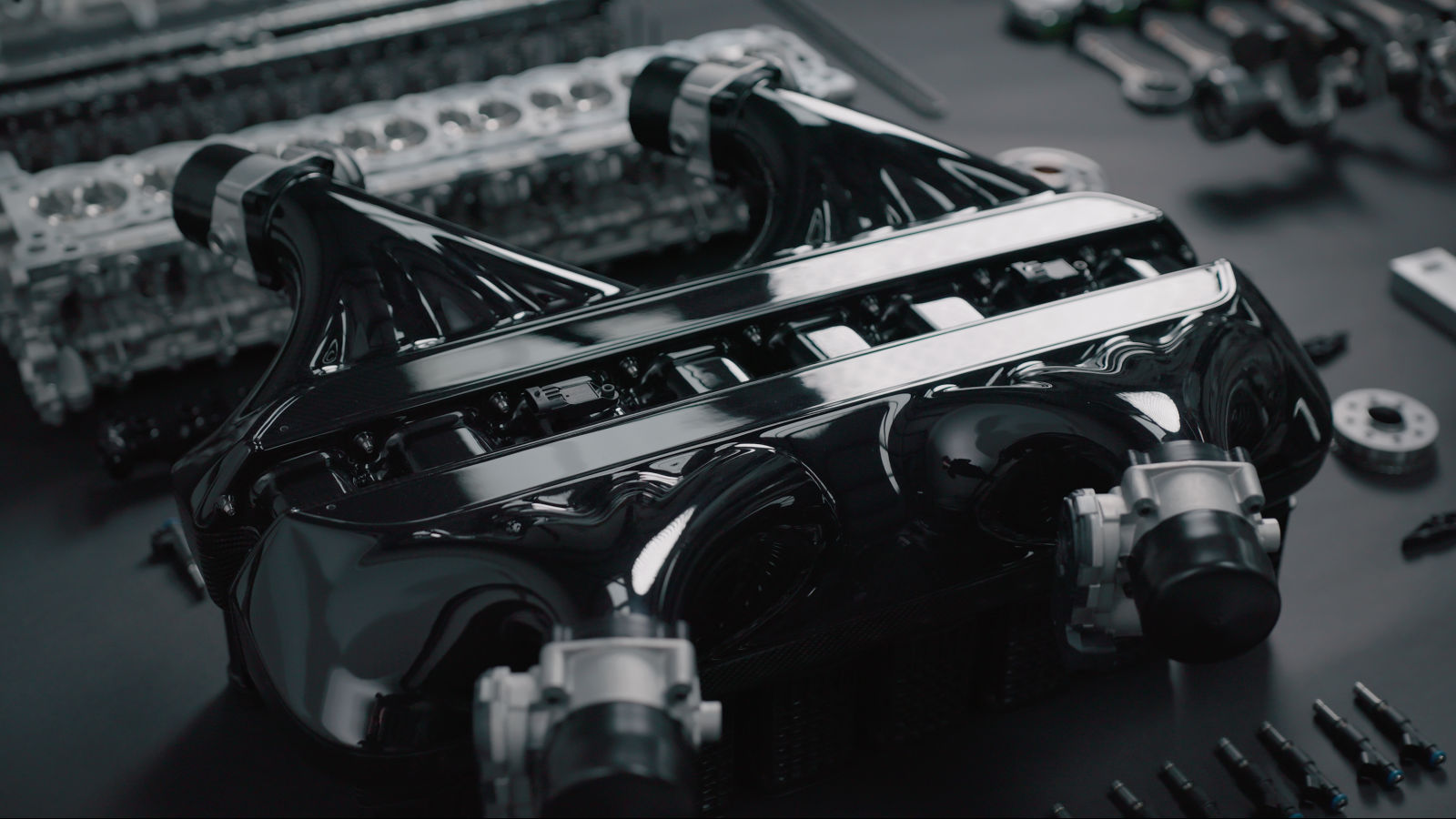 The plenum, a critical component in any naturally aspirated engine, became a key point of the design process. The subject of countless iterations, Bugatti worked to achieve the perfect balance between performance and aesthetics. True to the history of the marque, every component had to function flawlessly while also embodying a level of craftsmanship so exquisite that it could stand alone as a piece of automotive art, worthy of display beyond the car itself.
