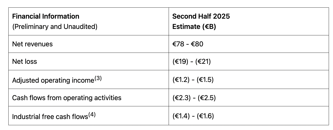 This reset of Stellantis’ business resulted in charges of approximately €22.2 billion, excluded from AOI, for the second half of 2025, including cash payments of approximately €6.5 billion, which are expected to be paid over the next four years.