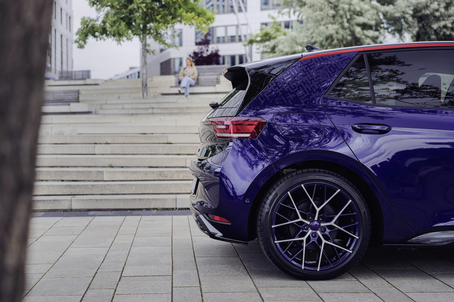 The striking ultra-violet metallic paint was developed especially for this unique model and is a similar hue to its legendary Golf forerunner. With a geometric F+I pattern on the C-pillar, plus numerous details in the interior, the ID.3 GTX Fire & Ice honours its predecessor and transfers the original design idea into the all-electric modern age.